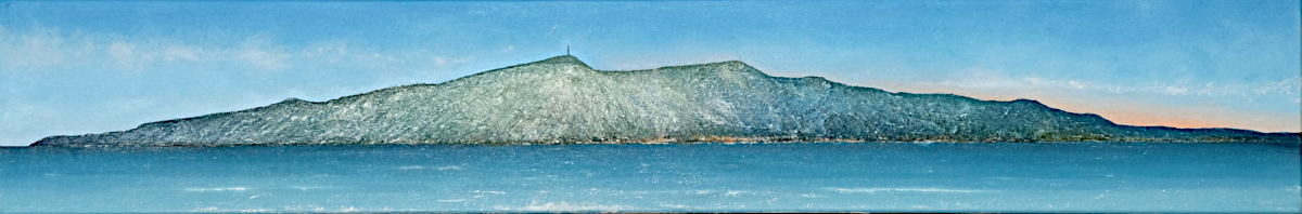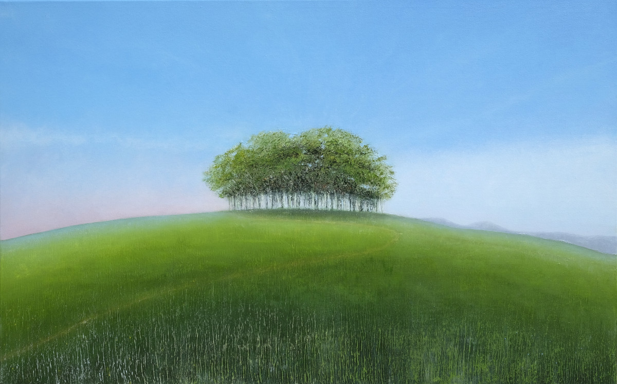 Paintings inspired by landscape, all oil paint on canvas, including forests, seascapes and war zones, among other subjects.