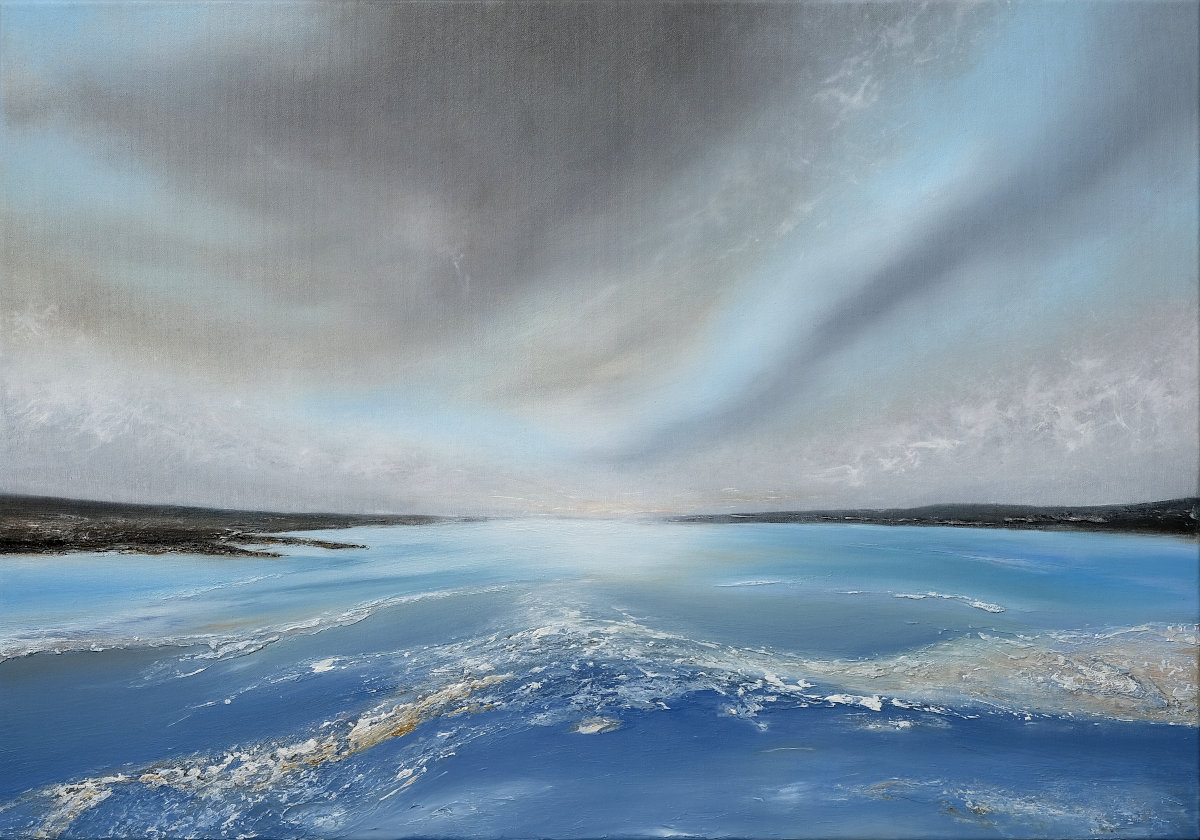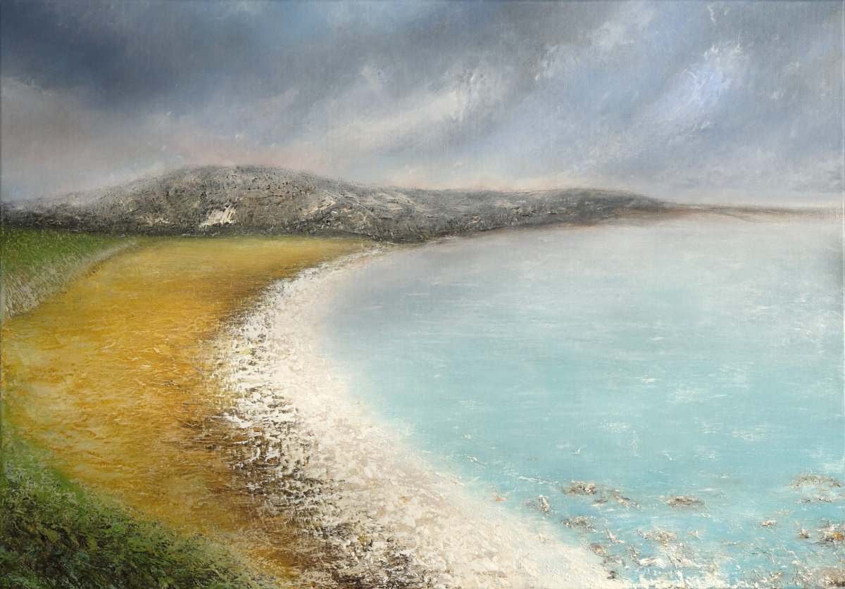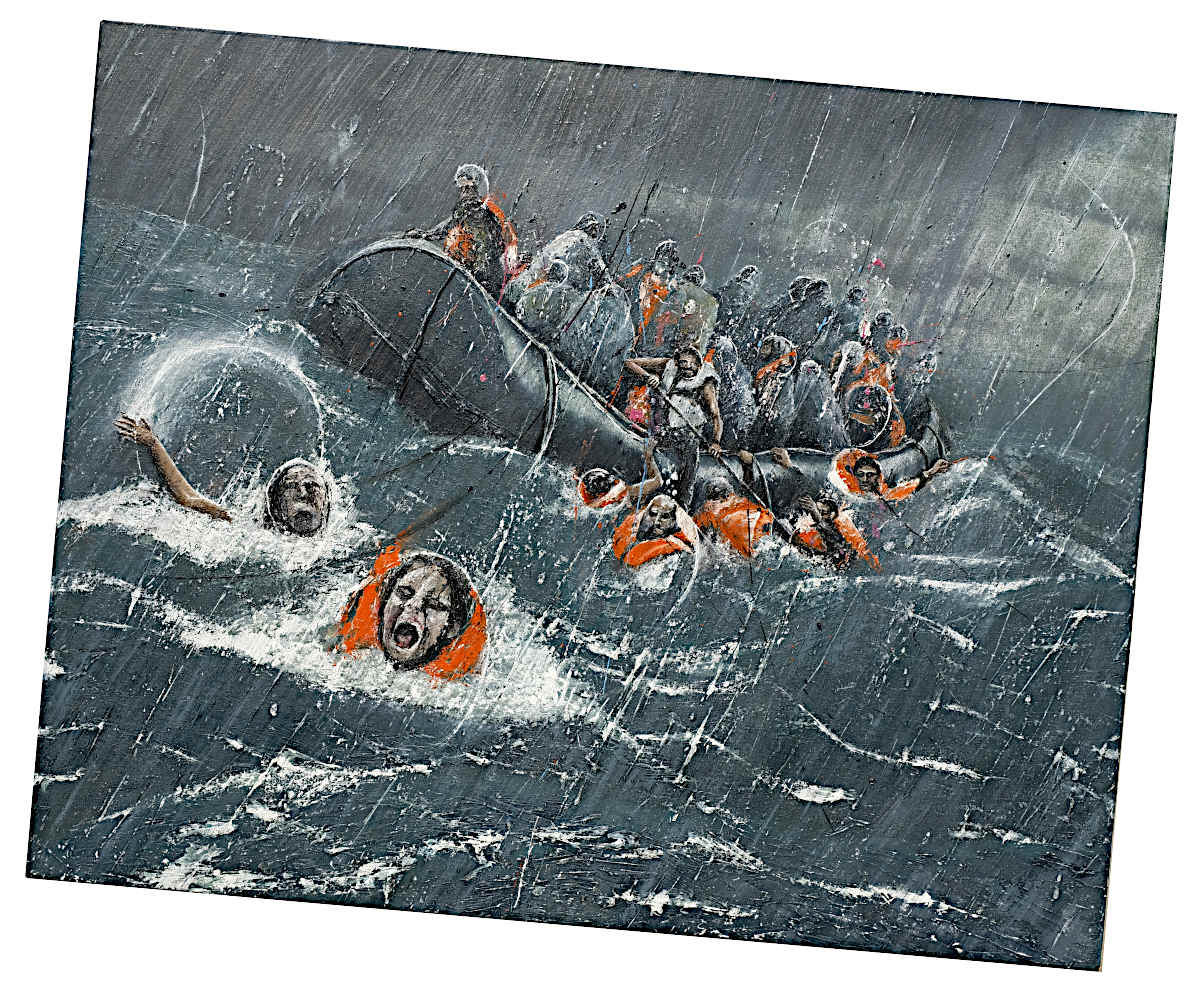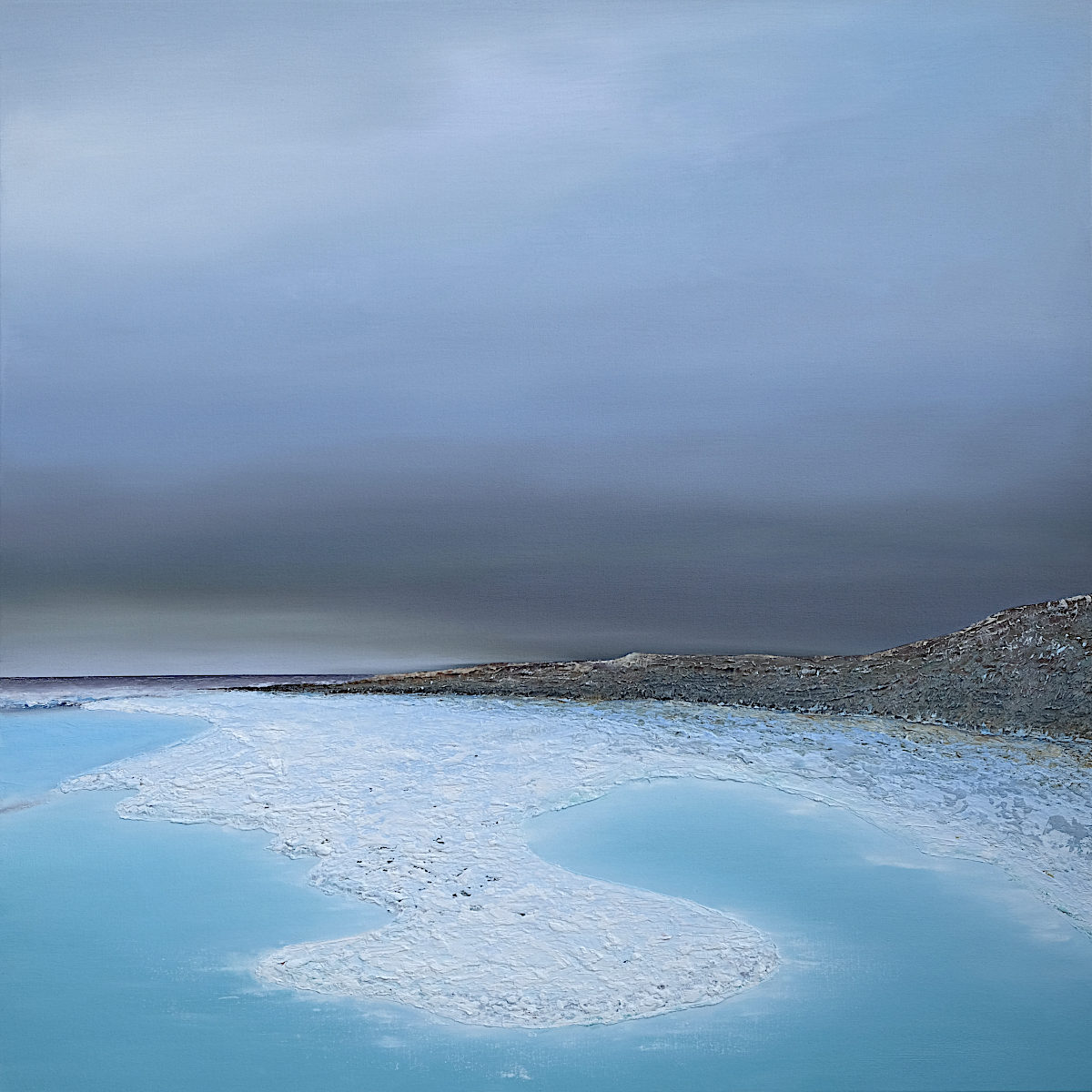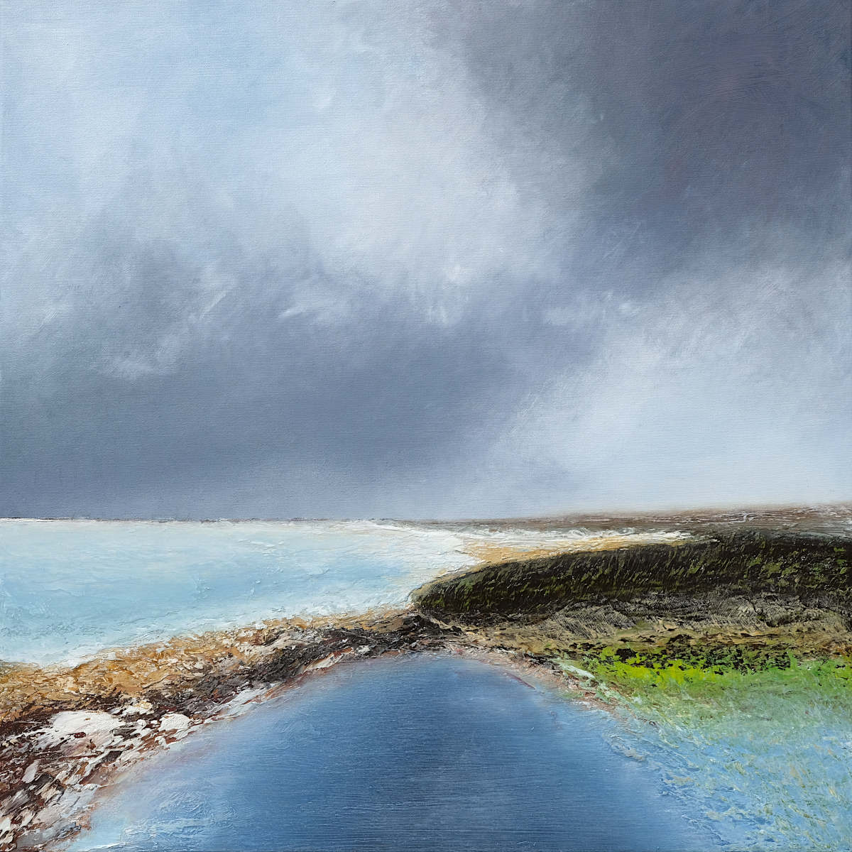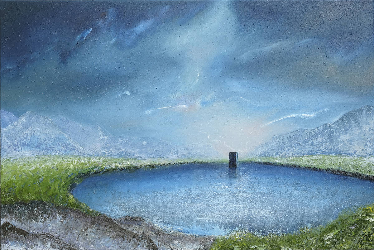 Paintings inspired by landscape, all oil paint on canvas, including forests, seascapes and war zones, among other subjects.